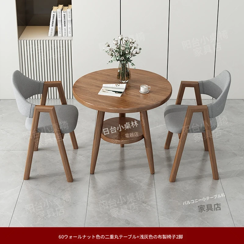 淡灰色2人用ファブリック椅子+60胡桃色丸テーブル