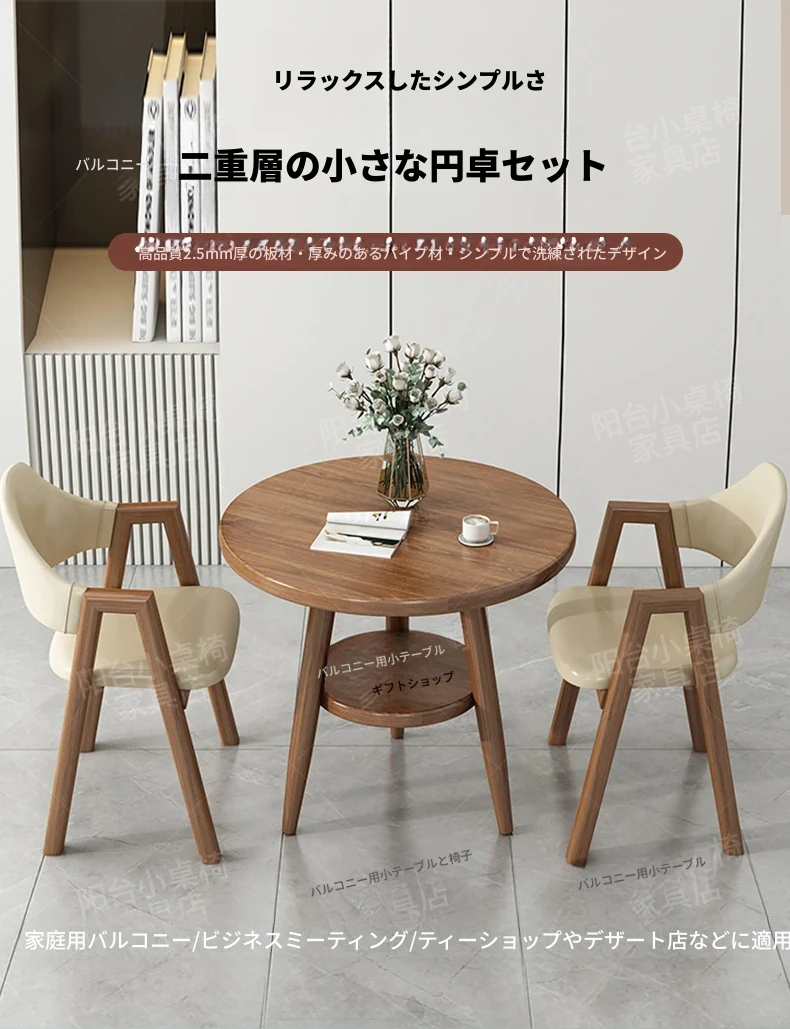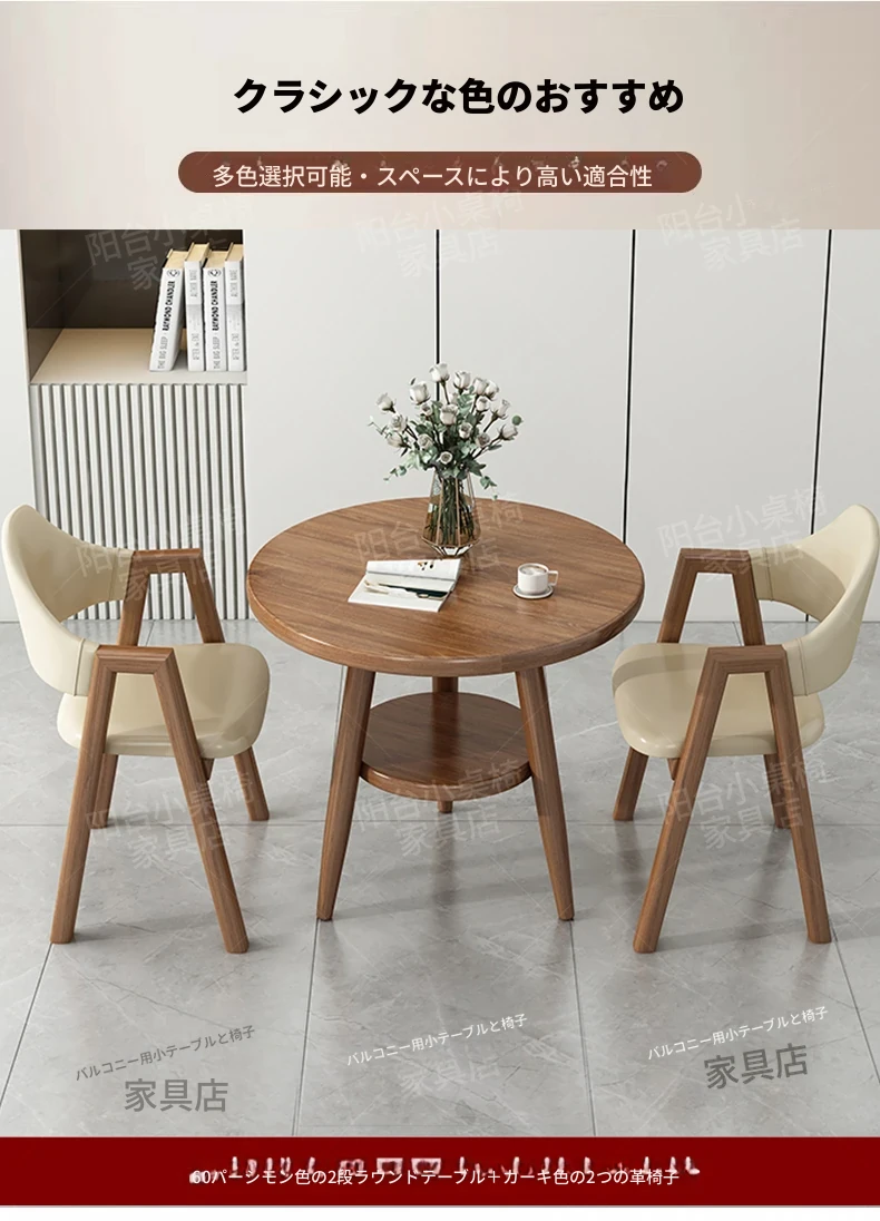 家庭用の小型カフェテーブルセット - リラックスできる談話スペースに最適!おしゃれな丸テーブルと椅子の組み合わせで、コーヒーやティーを楽しむひとときを演出。接客や休憩エリアにもぴったりです!