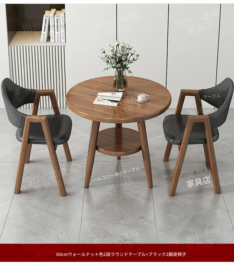 純黒色2人用レザー椅子+60胡桃色丸テーブル