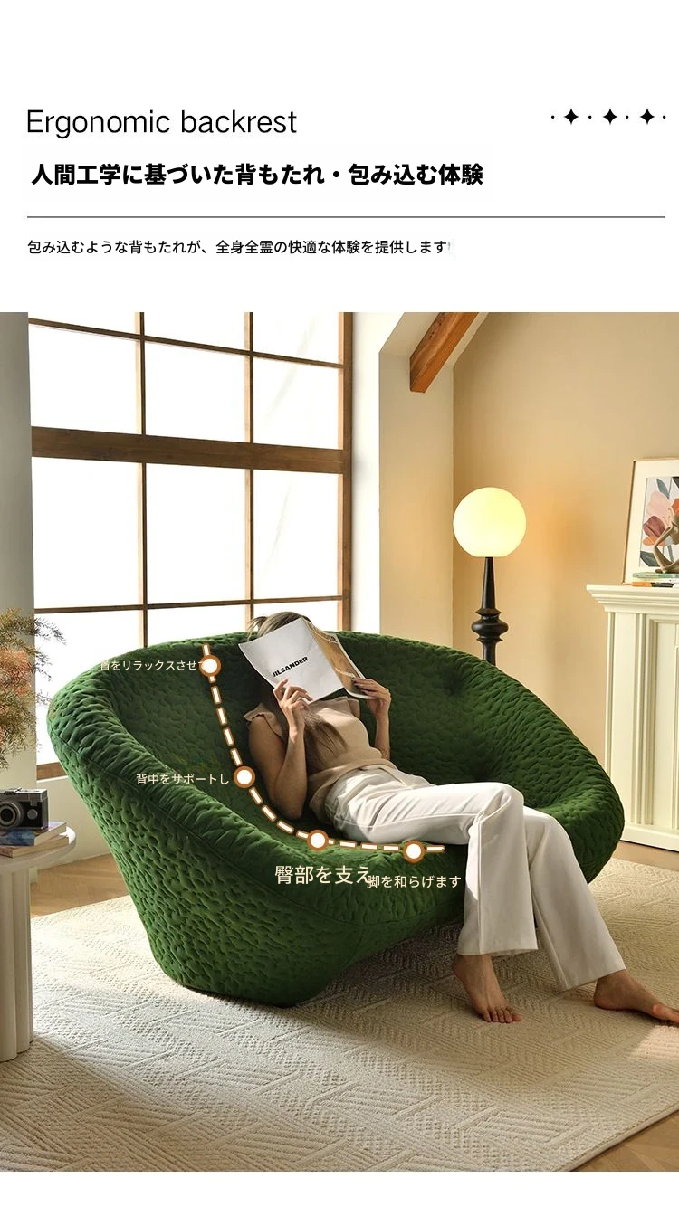 ファブリック製のクリエイティブで個性的、スタイリッシュなリビングルーム用アパートメント美容院の休憩スペースにぴったりな人気のアーチ型ソファ!快適さとデザイン性を兼ね備えた一品で、あなたの空間を華やかに演出します。