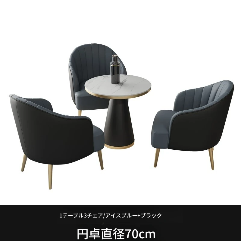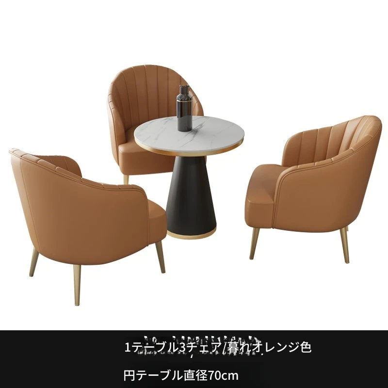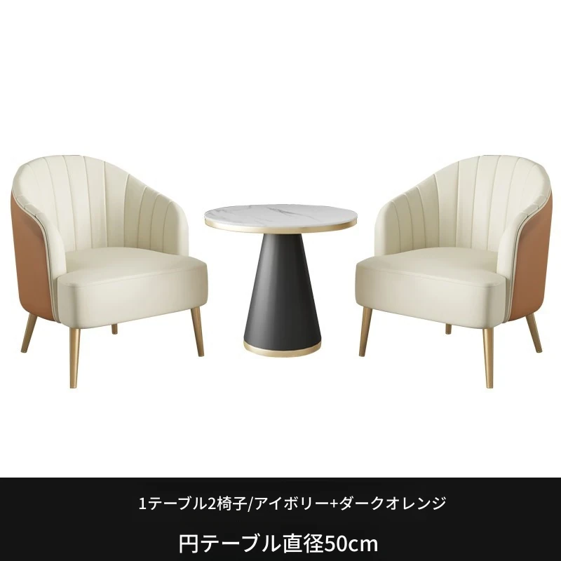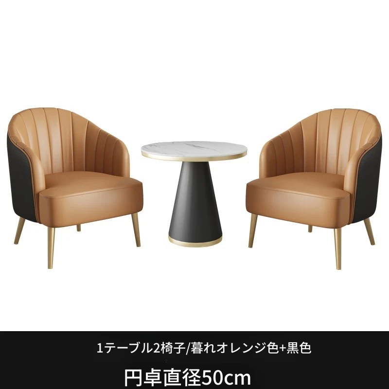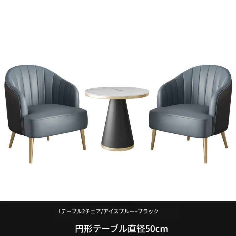 リラックスシングルソファチェア&ミーティングテーブル3点セット - 高級感あふれるカフェスタイル、一卓二椅子でお洒落な空間を演出!お客様をお迎えするのに最適なアイテムです。