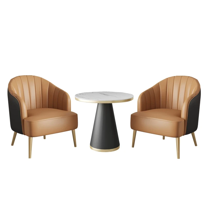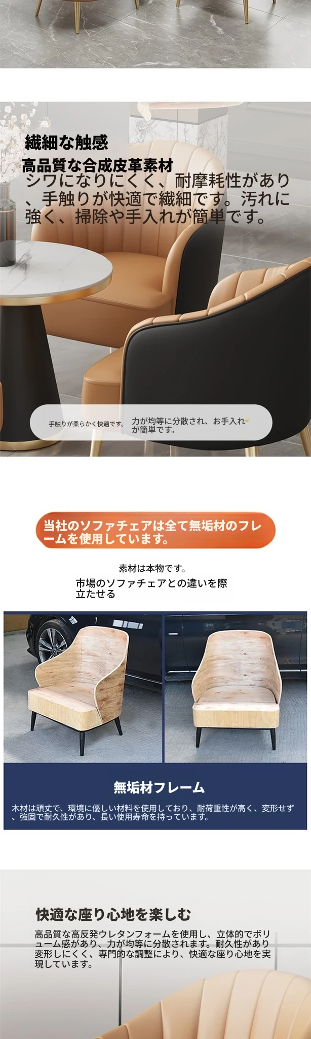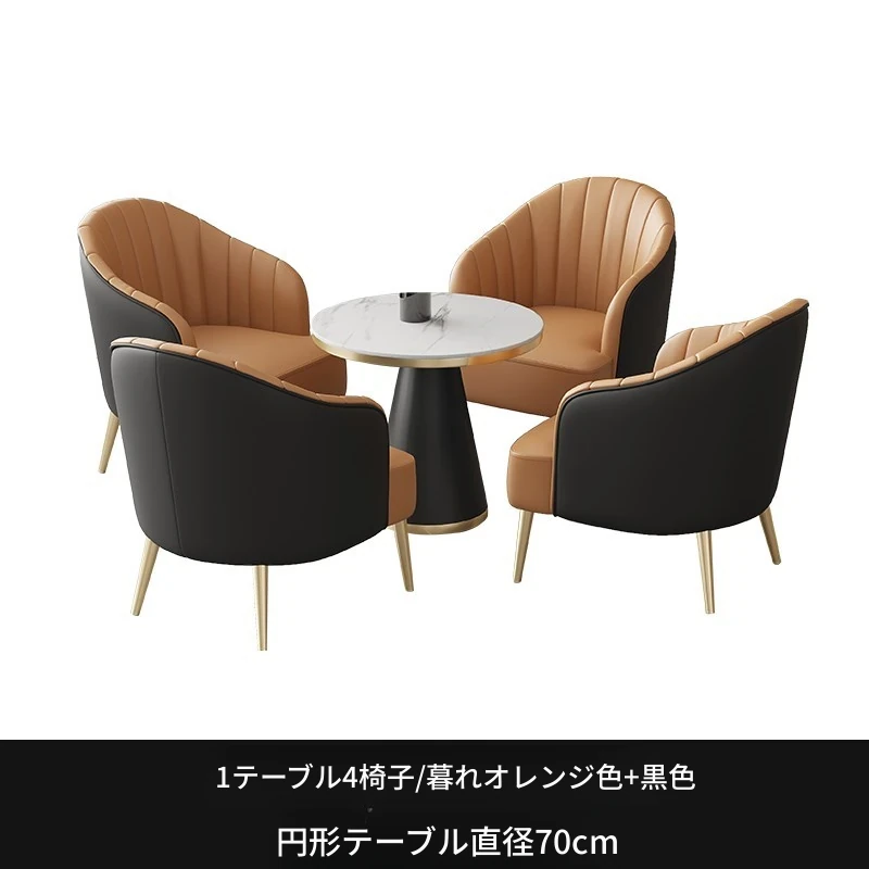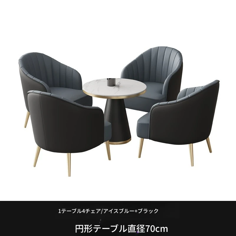 リラックスシングルソファチェア&ミーティングテーブル3点セット - 高級感あふれるカフェスタイル、一卓二椅子でお洒落な空間を演出!お客様をお迎えするのに最適なアイテムです。
