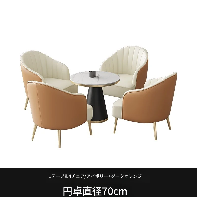 一卓四椅クリームホワイト+夕焼けオレンジ 卓70cm直径