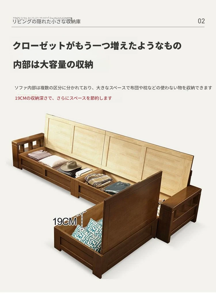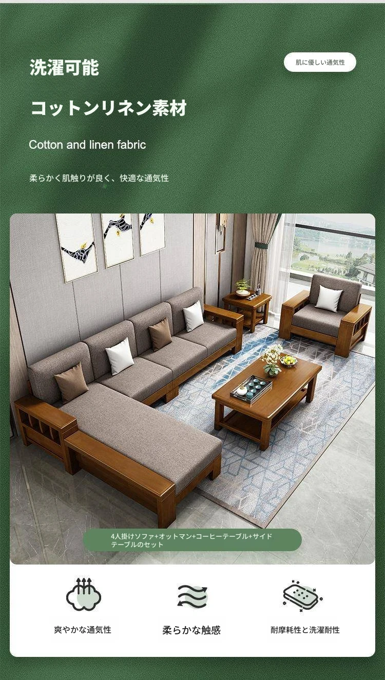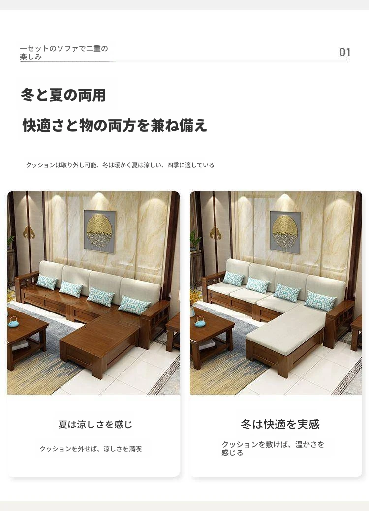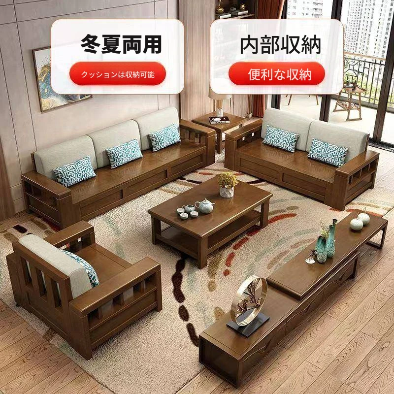 冬夏兼用の実木製ソファ!中式デザインで、サイズを問わずおしゃれなリビングに最適。木と布のコンビネーションで、収納付きのハイボックスソファセットは、機能性と美しさを両立。あなたの空間を彩ります!