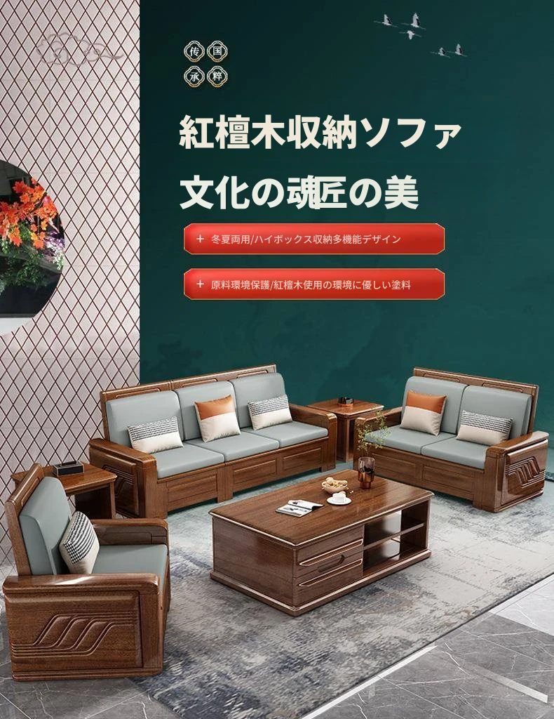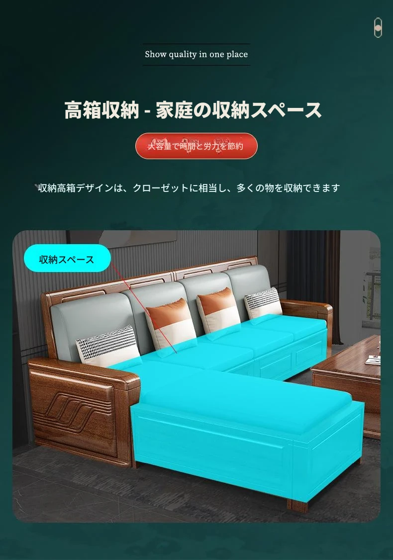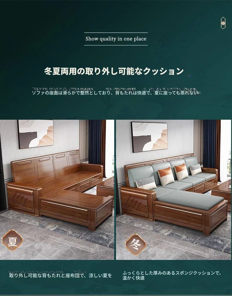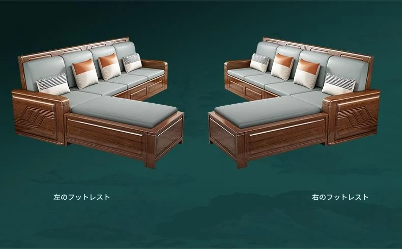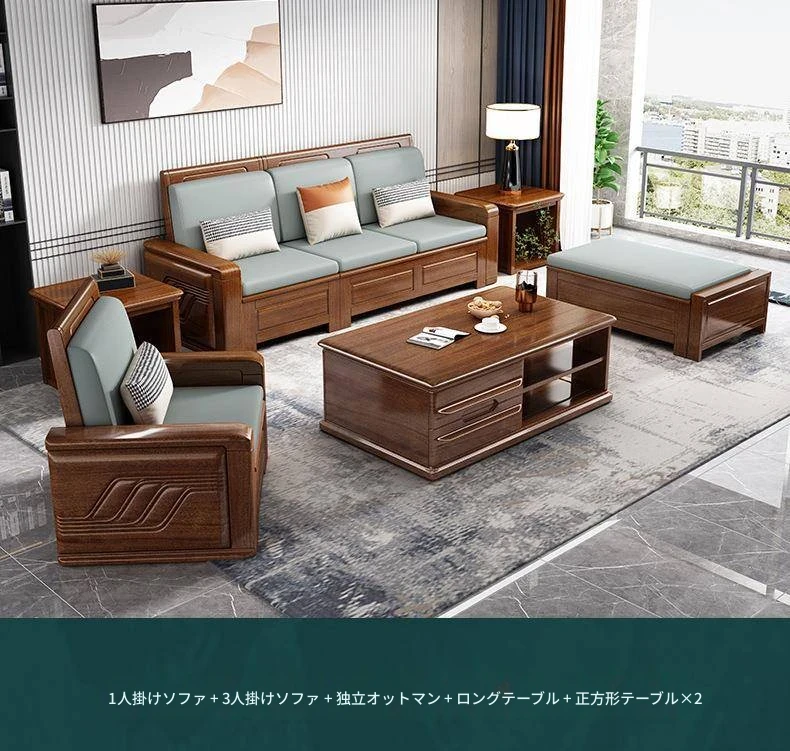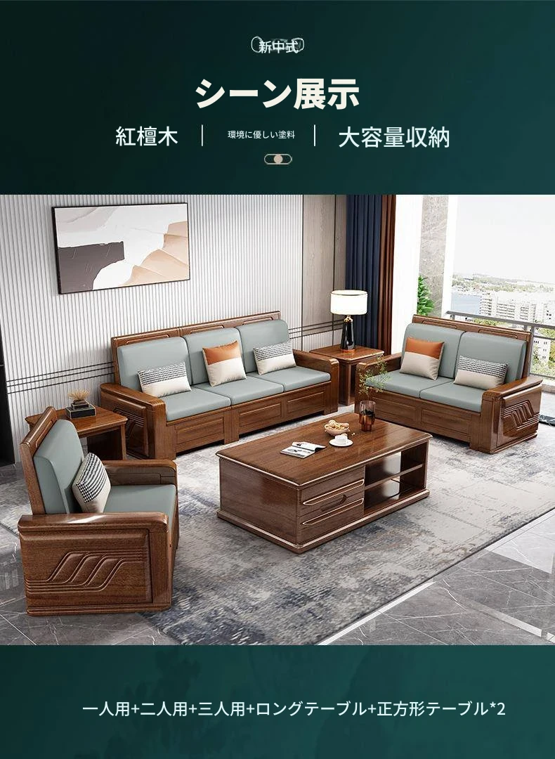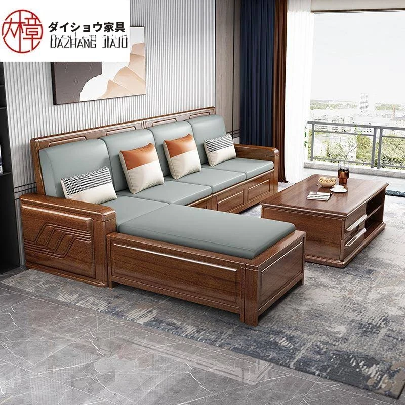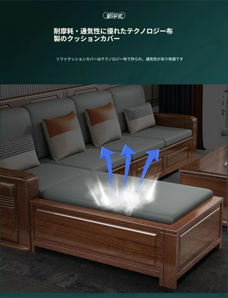 ウォールナット無垢材の新中式リビングソファ!洗えるファブリック仕様の多人数用コンビネーションソファ、工場直販でお手頃価格!快適な座り心地とスタイリッシュなデザインで、お部屋をアップグレード!