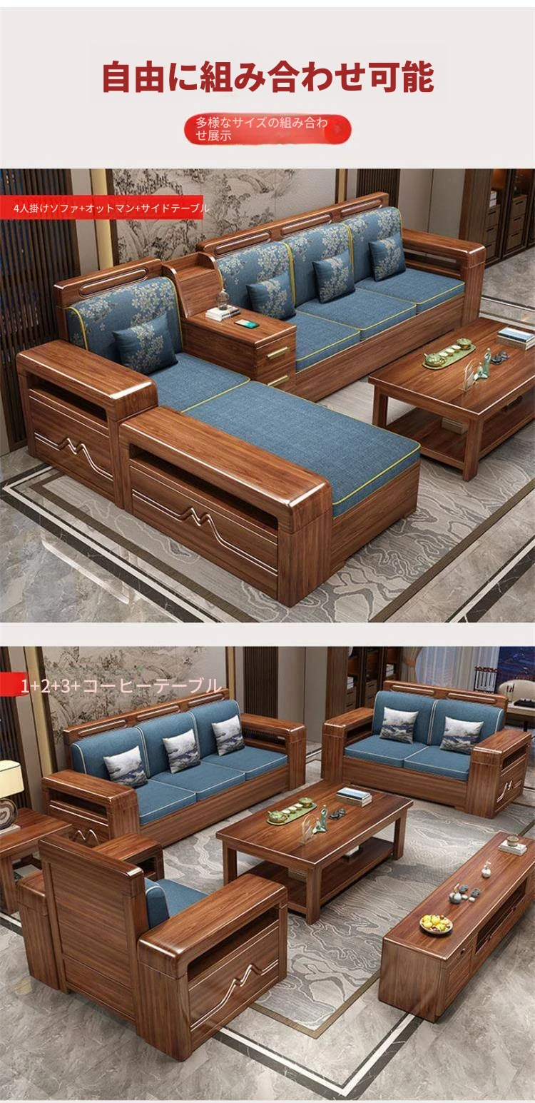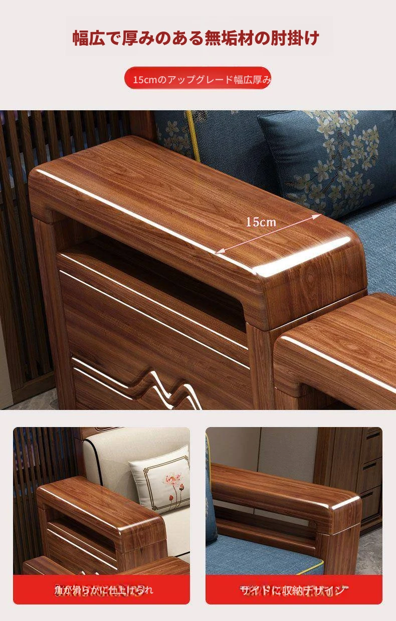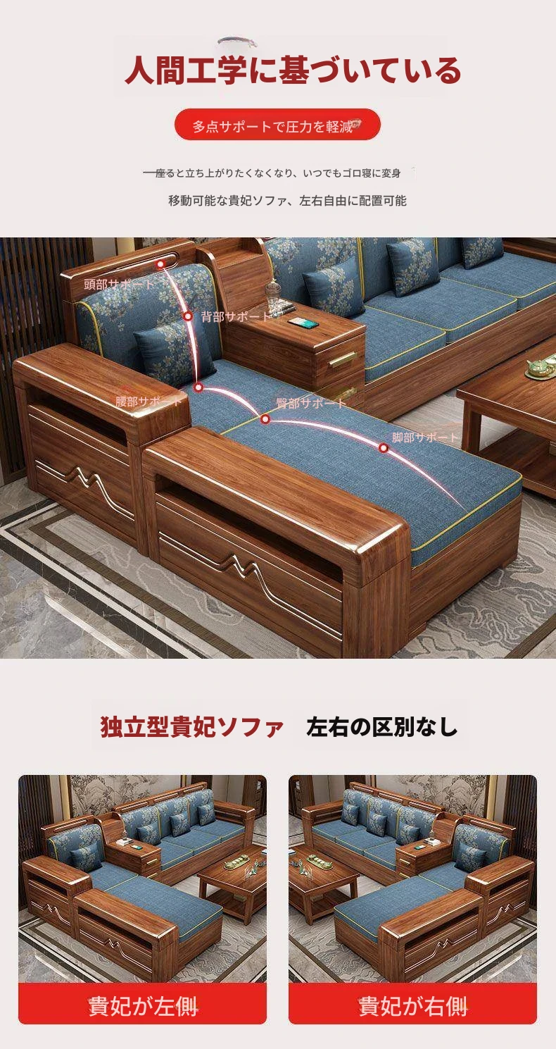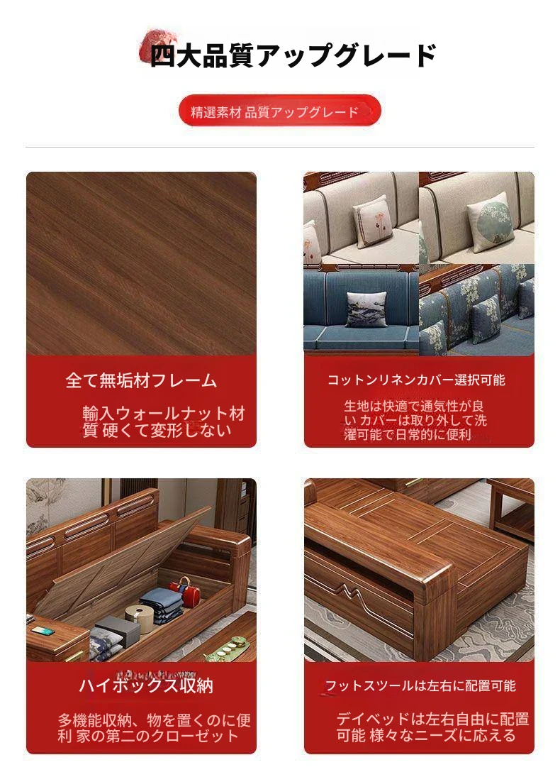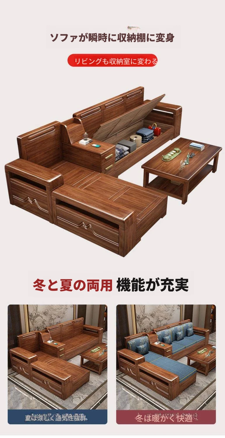 ウォールナットの無垢材ソファセット|中華風リビングに最適|冬夏兼用|収納付きのデイベッドソファ|小型住宅にもぴったりなスタイリッシュなデザイン!