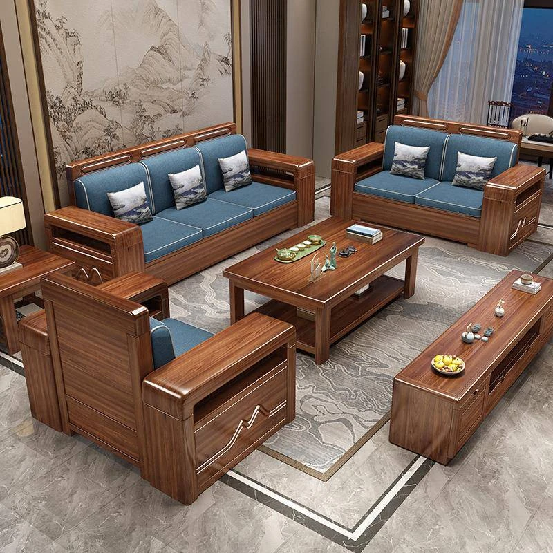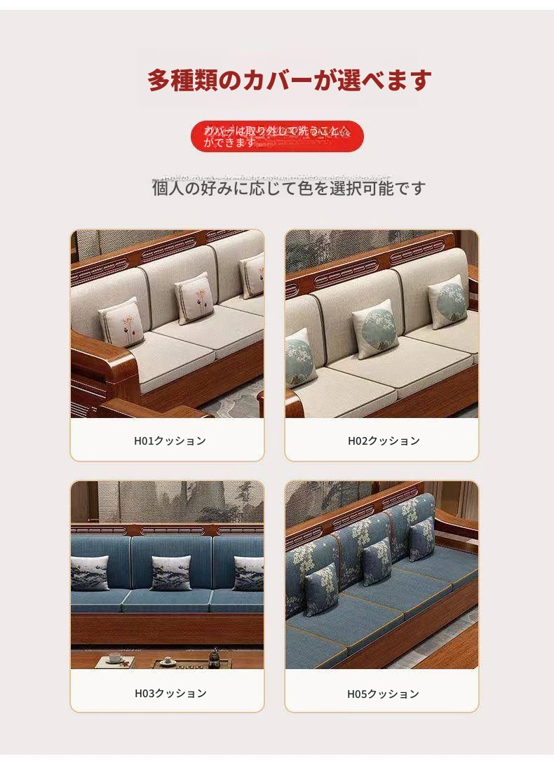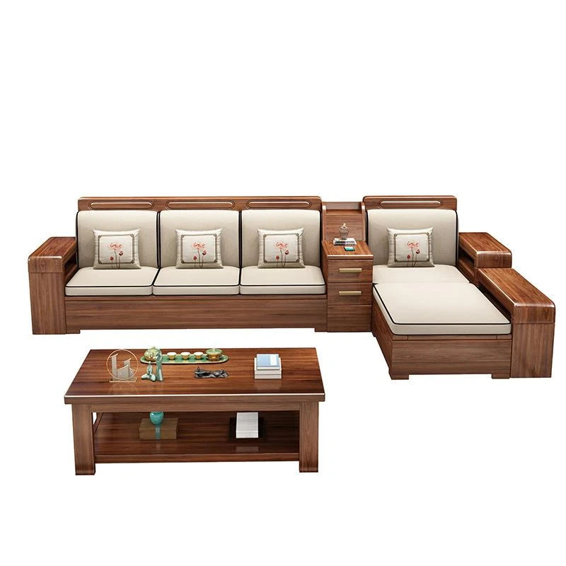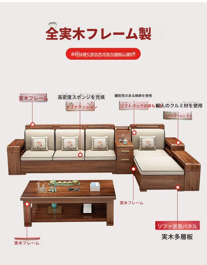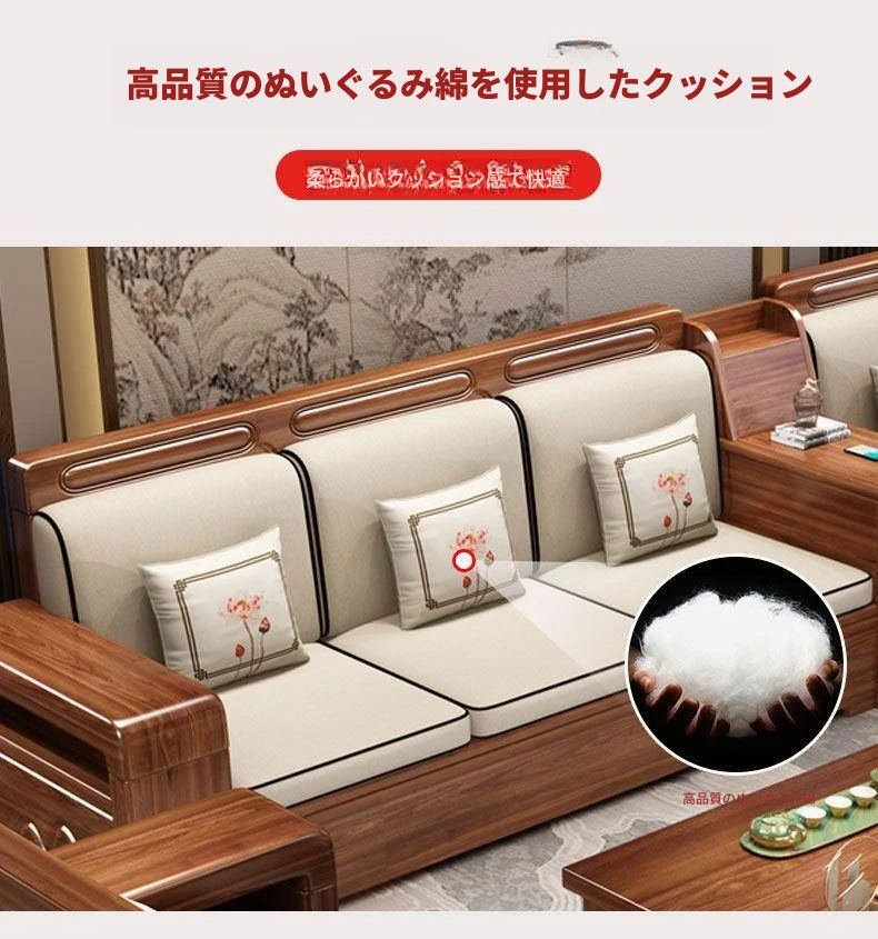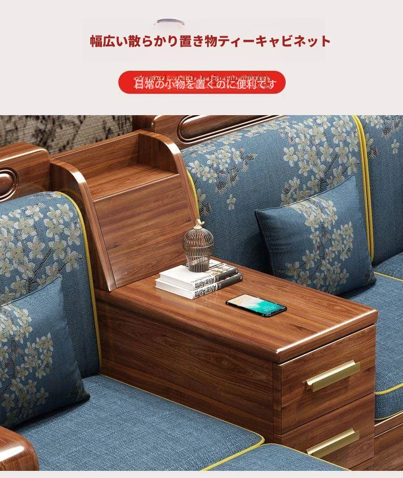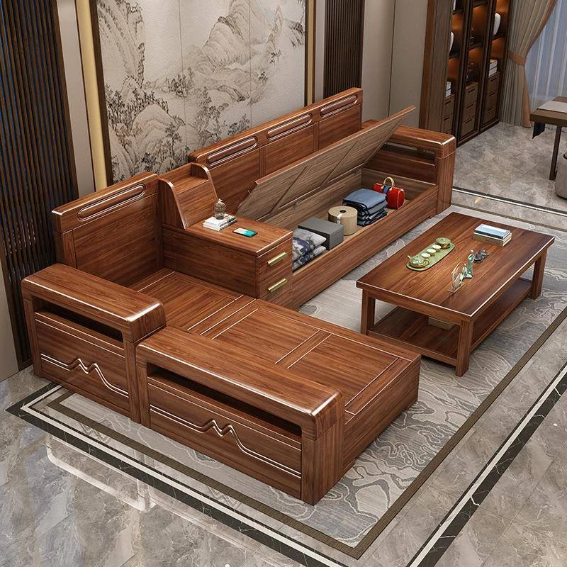 ウォールナットの無垢材ソファセット|中華風リビングに最適|冬夏兼用|収納付きのデイベッドソファ|小型住宅にもぴったりなスタイリッシュなデザイン!