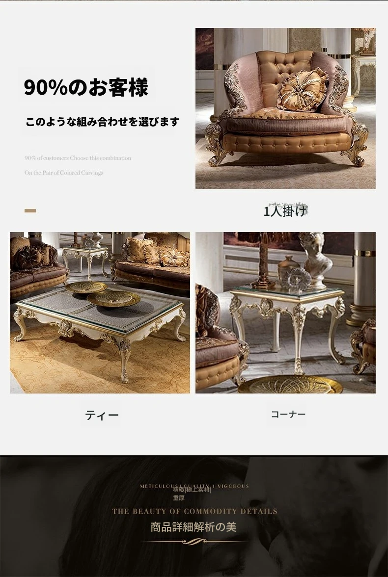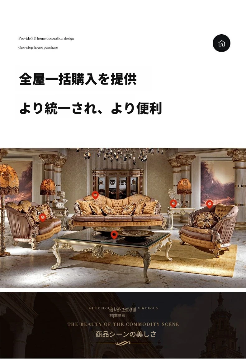 御匠壹号 欧風レザーとファブリックのコンビネーションソファ イタリアンスタイルの別荘リビングにぴったりな真皮と布の高級ソファセット