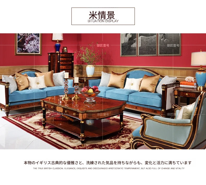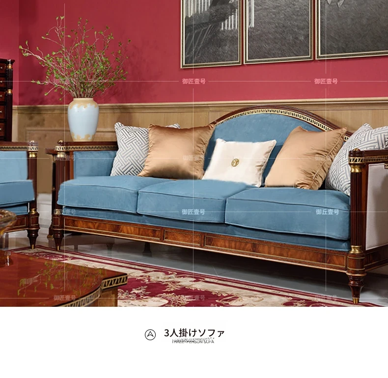 御匠壹号 高級英国スタイルのリビング家具 大型別荘向け 本革&ファブリックのソファ3人掛けコンビネーション 最高の快適さと洗練されたデザインを実現!あなたのリビングに贅沢をプラスします。