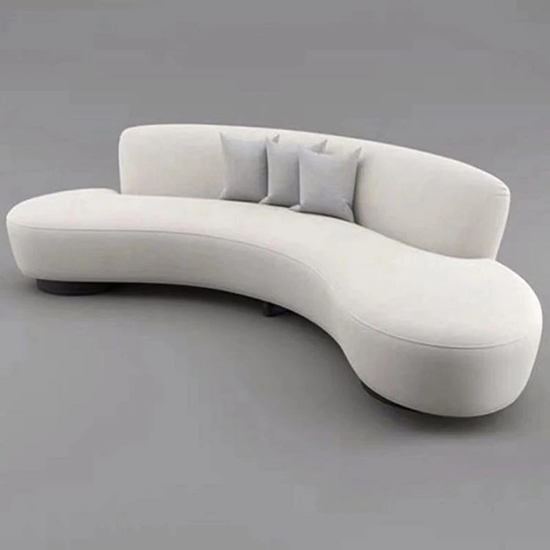 北欧スタイルの美容院向けアーチ形モダン3人掛けソファ | おしゃれなアパレルショップにぴったりなユニークなデザインの布製マルチソファ!お客様を引きつける魅力的な空間を演出します。