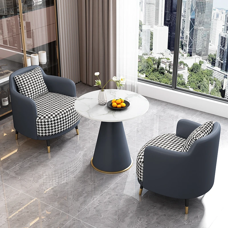 シンプルでスタイリッシュな談話テーブルセット|ソファ、コーヒーテーブル、椅子の3点セット|店舗やホテルのロビーに最適なリラックス空間を演出!おしゃれな接客家具でお客様をお迎えします。