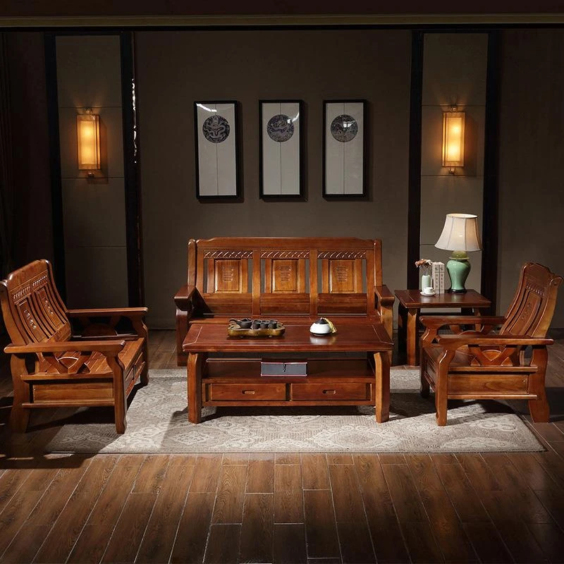 新中式全木製ソファセット - ラグジュアリーなリビング空間を演出する大容量、郊外の別荘にもぴったりな高品質な家具!