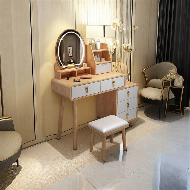 新作!中式デザインの実木製ドレッサー - コンパクトな小型住宅にぴったりな現代的でシンプルなメイクアップテーブル&収納キャビネット。美しいスタイルでお部屋を彩り、すっきりとした収納を実現!