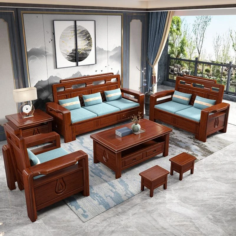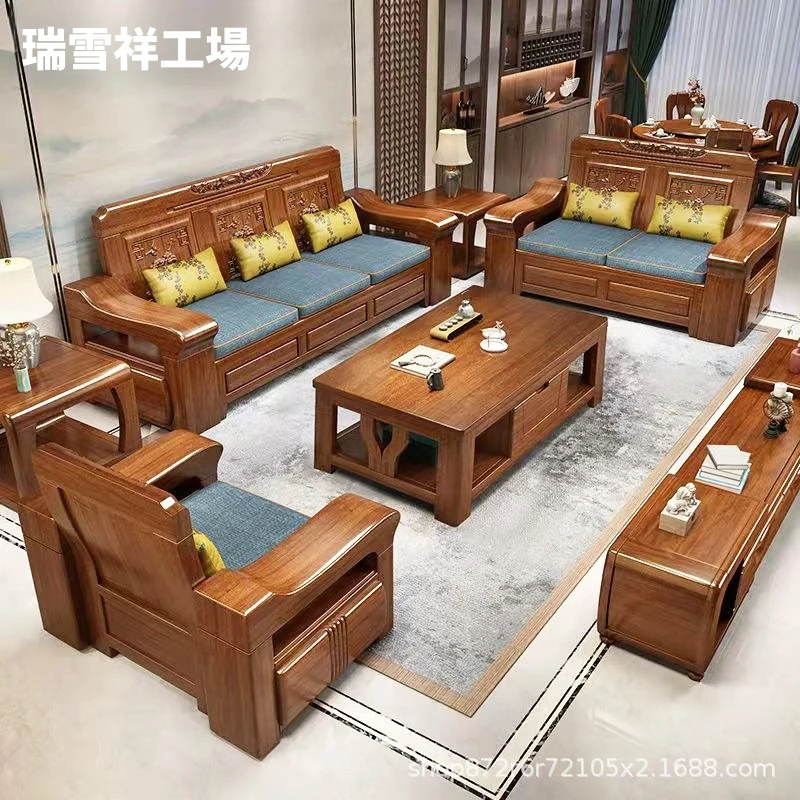 新中式スタイルの高級ウッディソファセット - モダンでシンプルなデザイン、大小様々なリビングルームに最適!9908#別荘家で贅沢なひとときをお楽しみください。